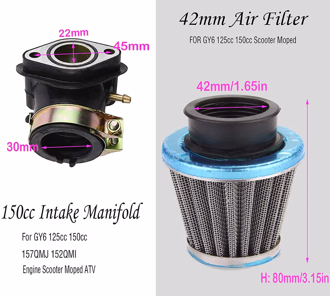 150cc Carburetor for GY6 4 Stroke Engines Electric Choke Motorcycle Scooter 152QMJ 157QMI with Air Filter Intake Manifold