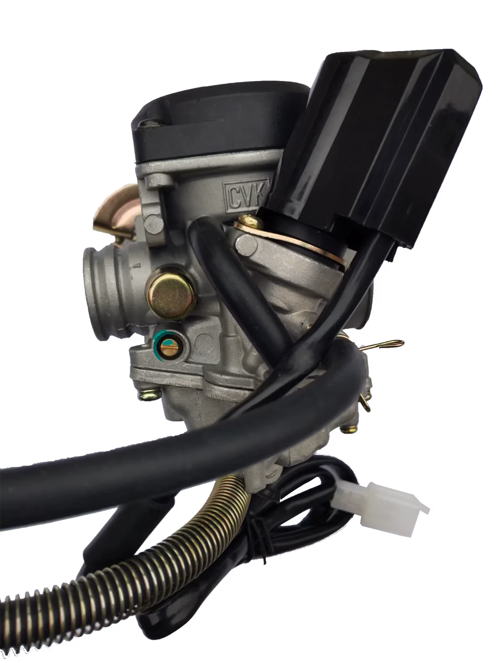 CVK carburetor designed specifically for GY6 QMB139 4-stroke scooter, ATV, and dirt bike engines. This carburetor is equipped with an electric choke. Check your application for compatibility prior to ordering, but commonly used on products from Baja Motorsports, Chuanl, Geely, Kymco, Manco, Panterra, Peace, Roketa, Strada, SunL, Tank, Vento, and so on. Note: Connector color may vary. supported the Brands of BAOTIAN, BASHAN, BENZHOU, CFMOTOR, CHARMING, DAYANG, DINLI, FUXIN, GEELY, GILERA, HANGLONG, HAOJIN, HAOJUE, HISUN, HONGZHOU, HUATIAN, JIAJUE, JIANSHE, JINLUN, JMSTAR, JONWAY, KAITONG, KEEWAY, KINROAD, KYMCO, LIFAN, LINGBEN, LINGTIAN, LINHAI, LINTEX, LONCIN, LONGJIA, MAWI, MEIDUO, MOTORRO, PIAGGIO, QINGQI, RHON, RIEJU, SACHS, SHINERAY, SKYGO, SUKIDA, TAOTAO, VESPA, VONROAD, WANGYE, WONJAN, XINGYUE, XINLING, XINTIAN, YIBEN, YINGANG, ZHONGYU, ZNEN, ZONGSHEN, etc.