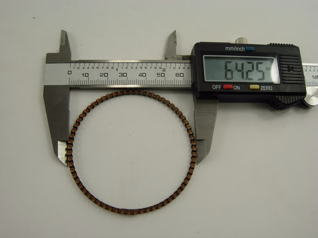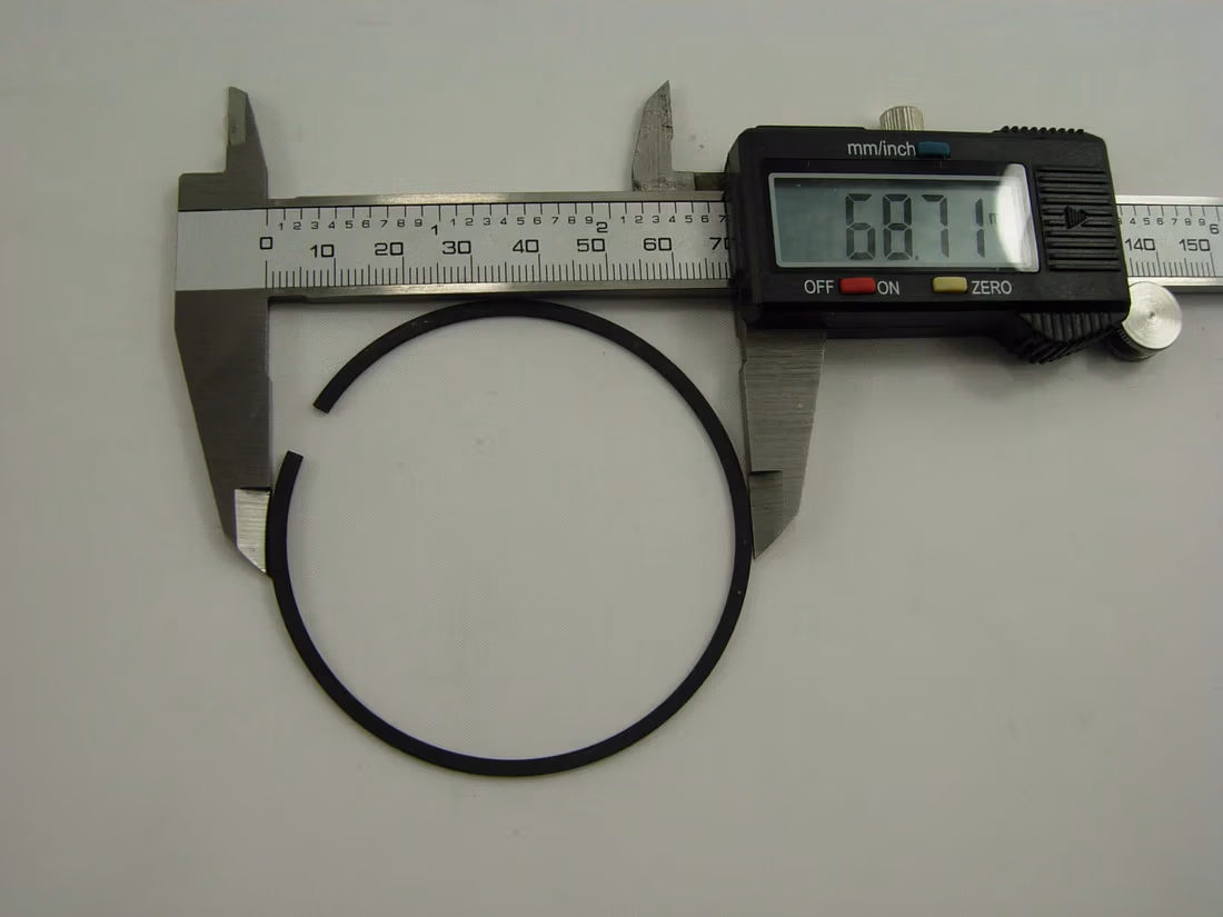 Diameter of piston that the rings suit: 67 mm (2.63 inches) Thickness of thickest oil rings: 1.2 mm (0.04 inches) Thickness of spring ring: 2.5 mm (0.09 inches)