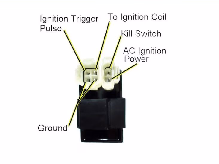 Universal Parts CDI Unit with Alternating Current for 150cc 125cc and 50cc GY6 and QMB based engines. Capacitor discharge ignition (CDI module) or ignitor is used on very many gas scooters, ATVs, dirt bikes, and go karts with modern 4-stroke GY6/QMB139 or Honda-style engines. This CDI module is commonly used on today’s popular medium to large engine sizes of 50cc, 90cc, 125cc, and 150cc and has a 6 pin rounded connector as pictured. If you think your CDI is no good you will not be getting a pulse to coil to fire spark plug. If you have voltage in other areas and no spark your CDI very well might be no good. These do go out as well as coil and magnetos these are main parts that create spark to run scooter. Dimension: L=2.55″, Width=1.47″, Thickness=0.9″ supported the Brands of BAOTIAN, BASHAN, BENZHOU, CFMOTOR, CHARMING, DAYANG, DINLI, FUXIN, GEELY, GILERA, HANGLONG, HAOJIN, HAOJUE, HISUN, HONGZHOU, HUATIAN, JIAJUE, JIANSHE, JINLUN, JMSTAR, JONWAY, KAITONG, KEEWAY, KINROAD, KYMCO, LIFAN, LINGBEN, LINGTIAN, LINHAI, LINTEX, LONCIN, LONGJIA, MAWI, MEIDUO, MOTORRO, PIAGGIO, QINGQI, RHON, RIEJU, SACHS, SHINERAY, SKYGO, SUKIDA, TAOTAO, VESPA, VONROAD, WANGYE, WONJAN, XINGYUE, XINLING, XINTIAN, YIBEN, YINGANG, ZHONGYU, ZNEN, ZONGSHEN, etc.
